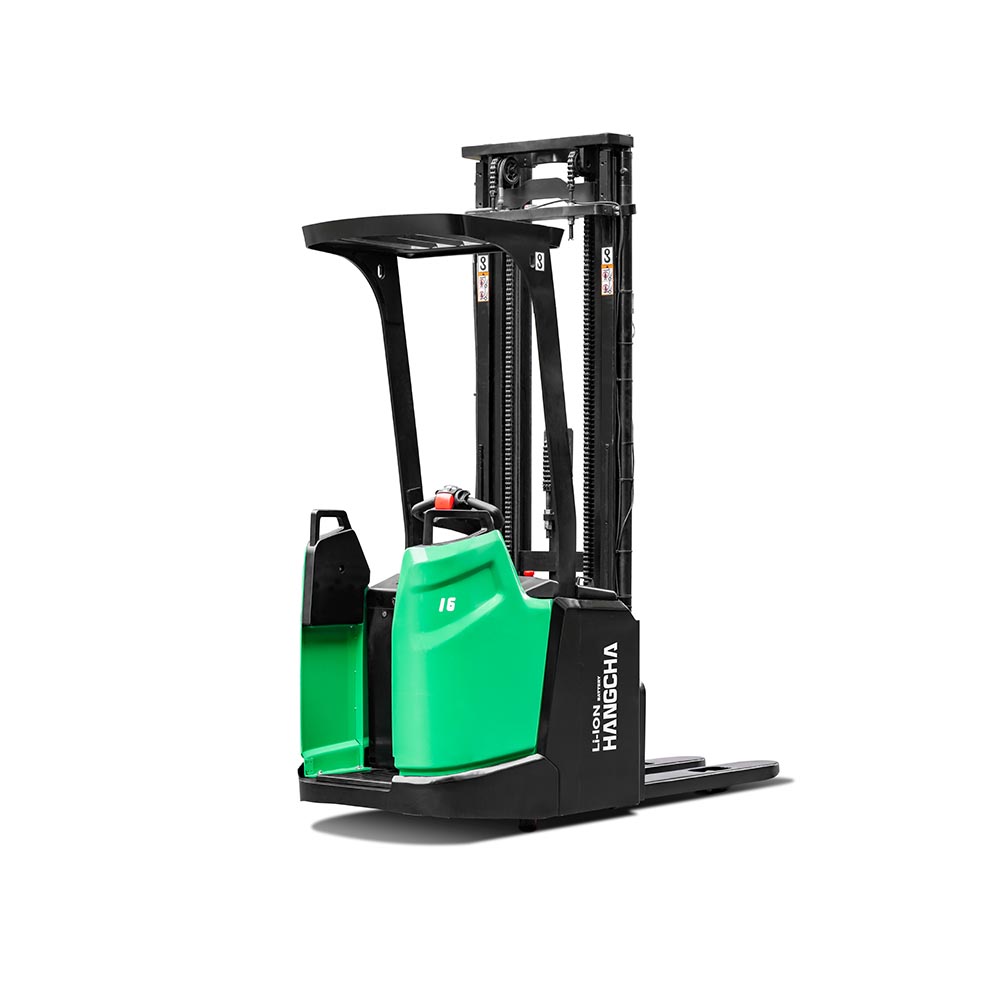 A series high range stand-on pallet stacker with reach fork(Li-Ion)