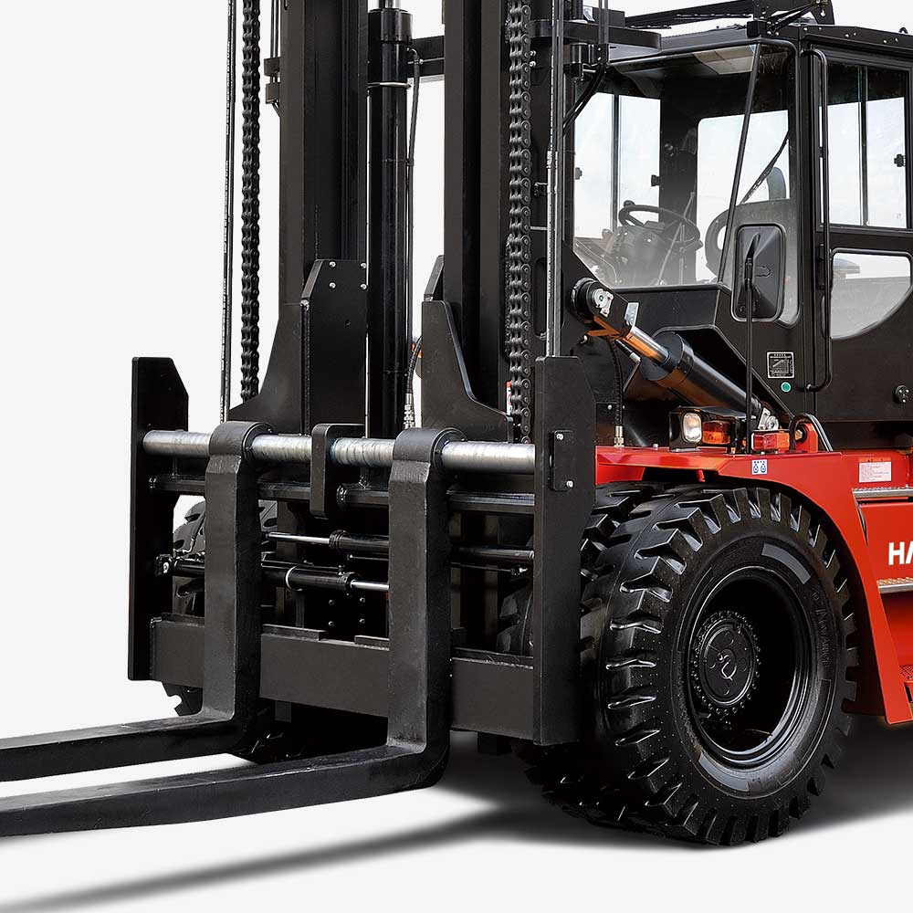 Transverse steering axle with full hydraulic steering and sensor system is to make sure easy steering.