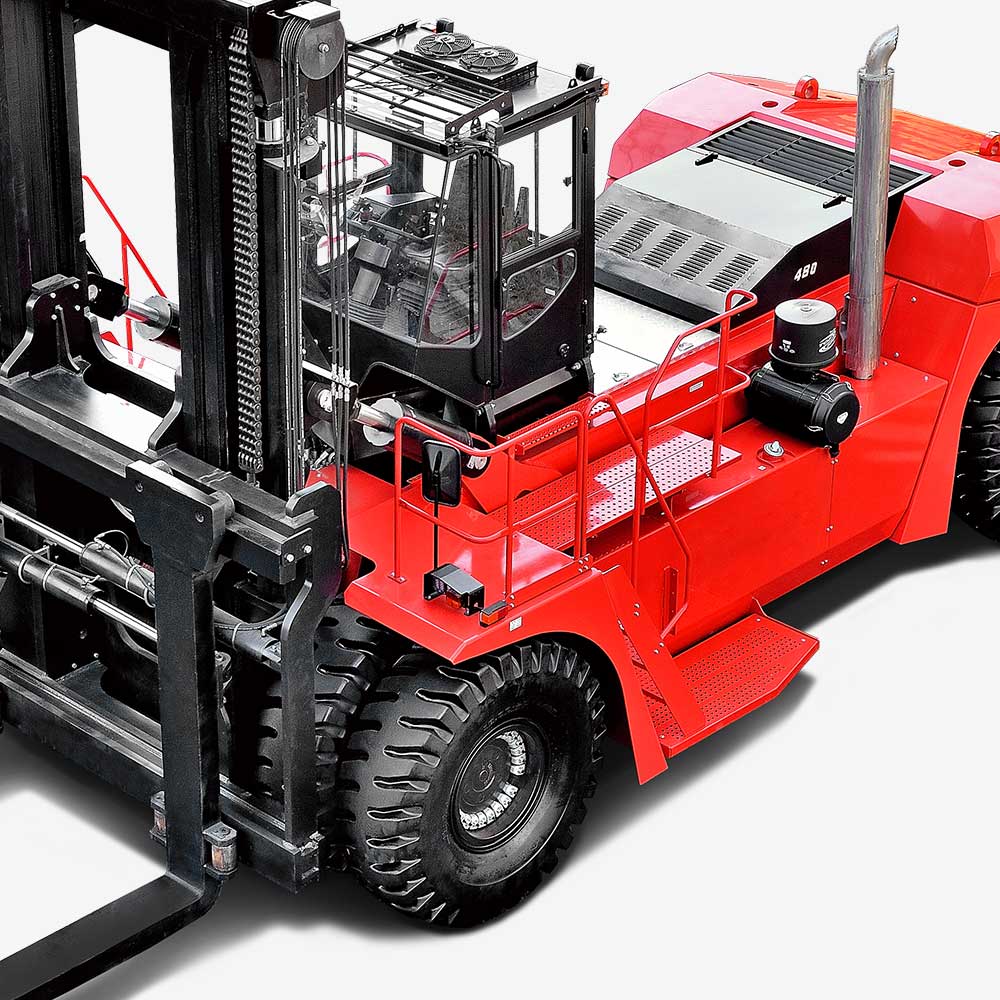 With integrated and multi-functional operating handle and electro-hydraulic proportional control, easy to lift, tilt and operate. With LUDV main control multiple-way valve, it can realize fast response, precise operation and achieve fine repeatability.