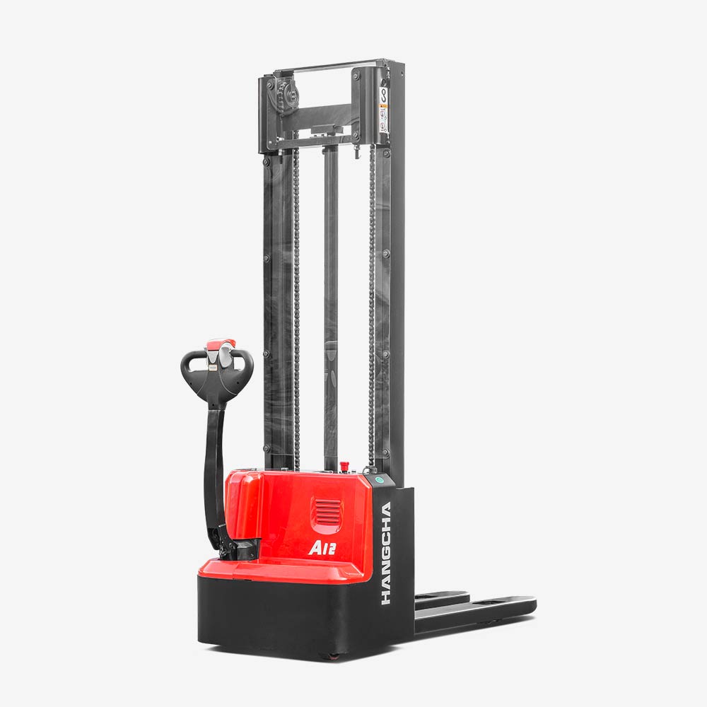 The A series mini range pallet stacker with initial lift is a new product developed by Hangcha for warehousing and logistics applications. It has a compact body, and can be operated easily and is suitable for operation in narrow aisles. It can carry out double pallet handling through leg lifting and is ideal for loading in warehouses, supermarkets, and workshops.