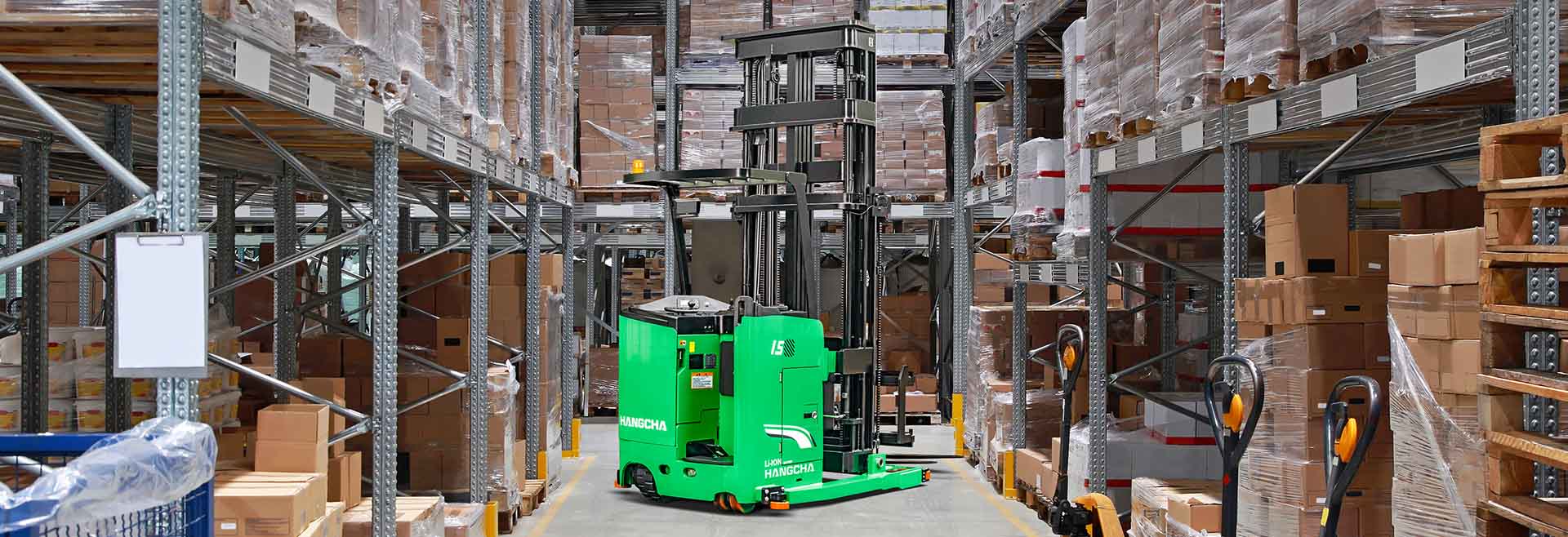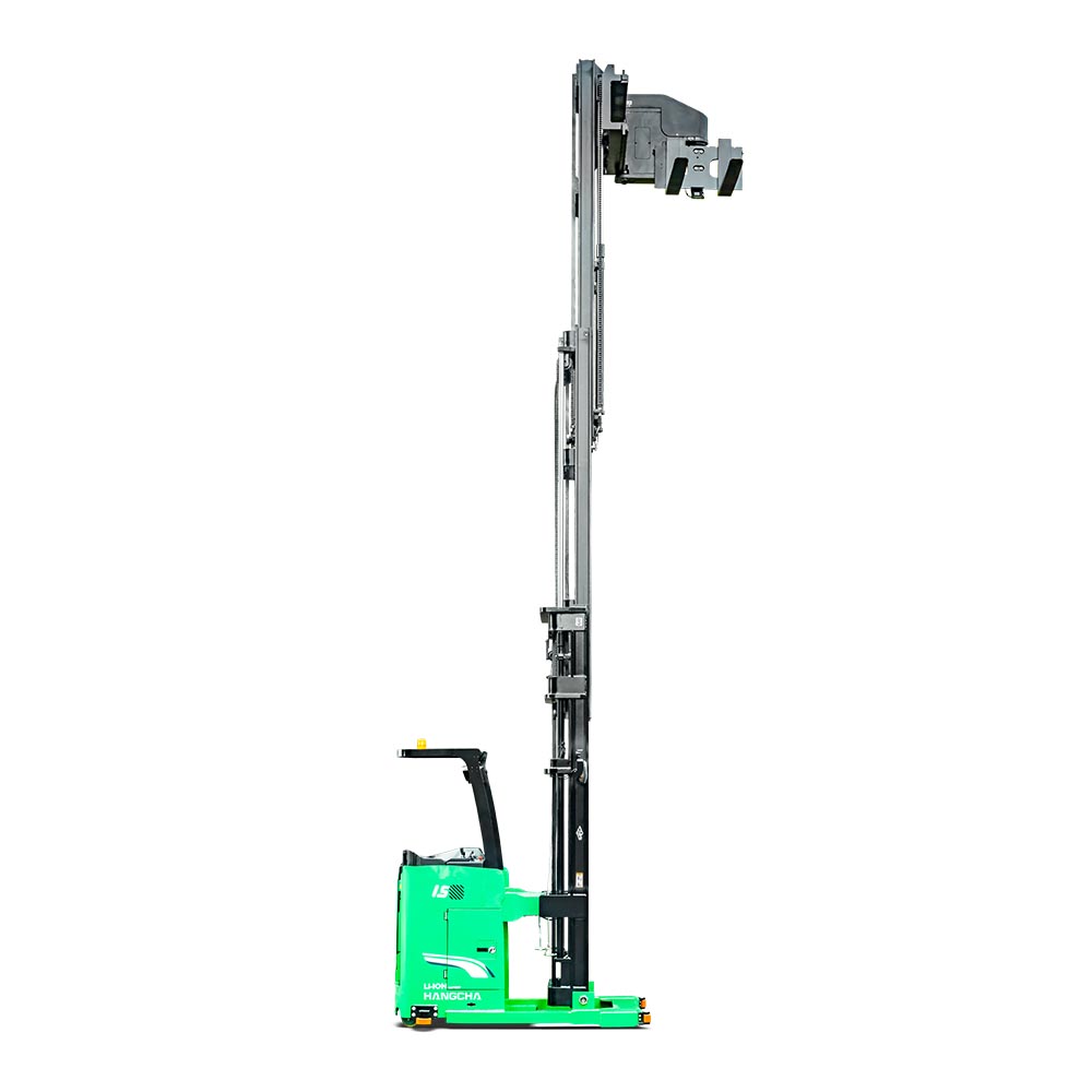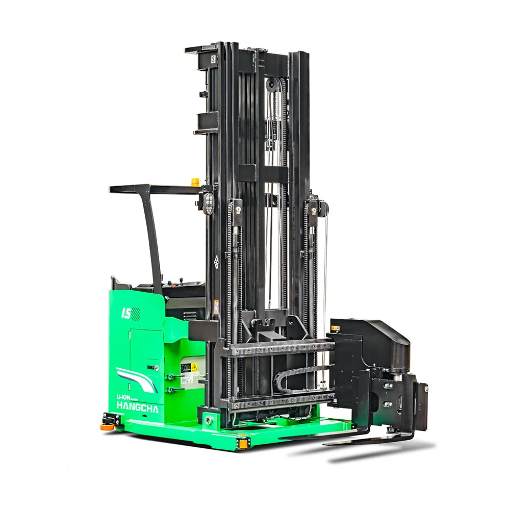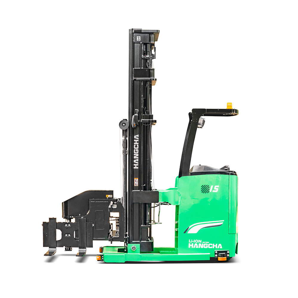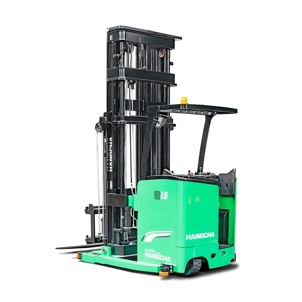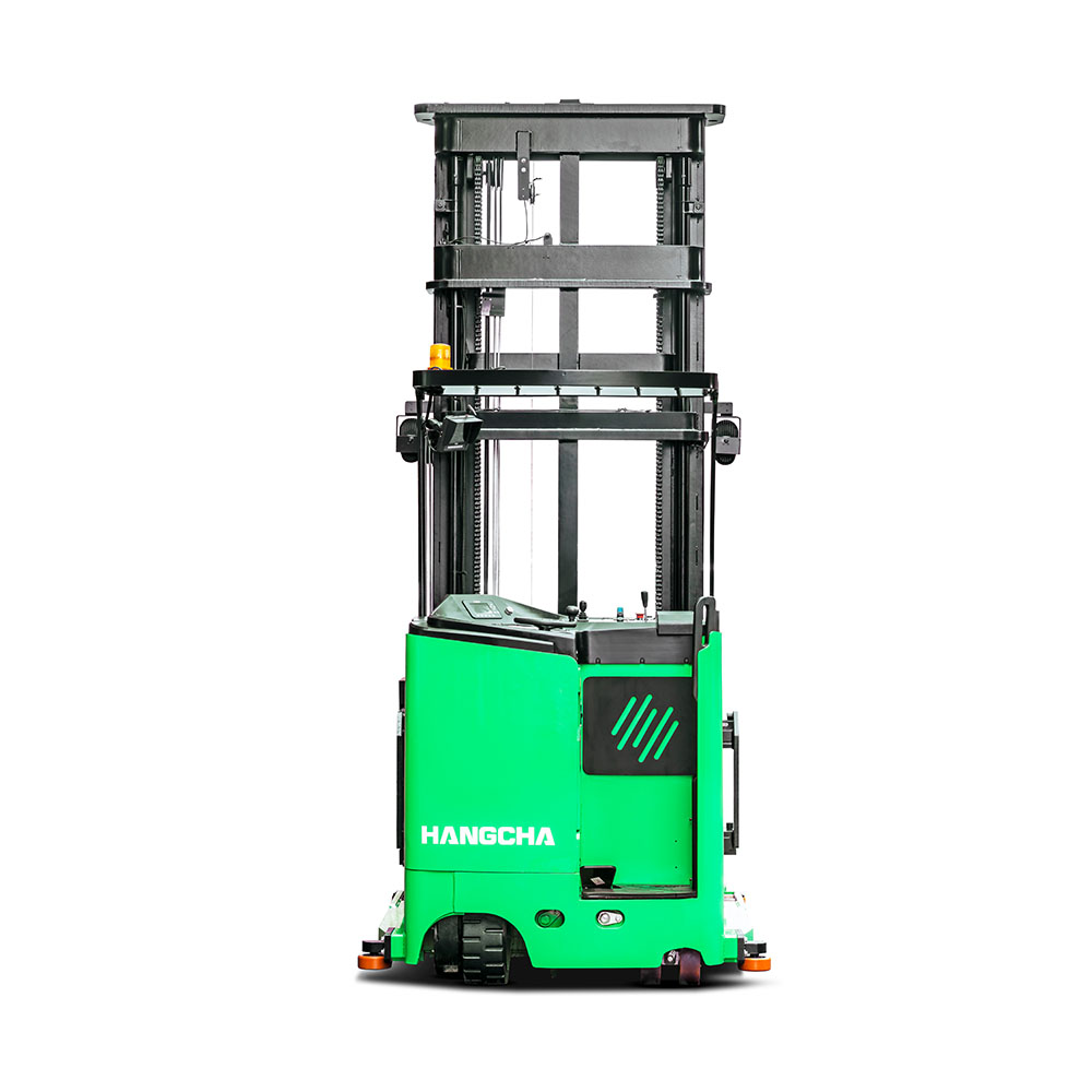 A series stand-on man-down turret truck is a new product special for narrow aisles developed by Hangcha. With advanced 48V permanent-magnet brushless electric attachment head, this stacker features advanced performance, comfortable operation, safety and reliability, and low cost of use and maintenance. The light weight of the whole stacker and the four-pivot structure for the chassis allow smaller equivalent load of floors, higher space availability of your warehouses, being an ideal tool to improve the capacity of your warehouses.