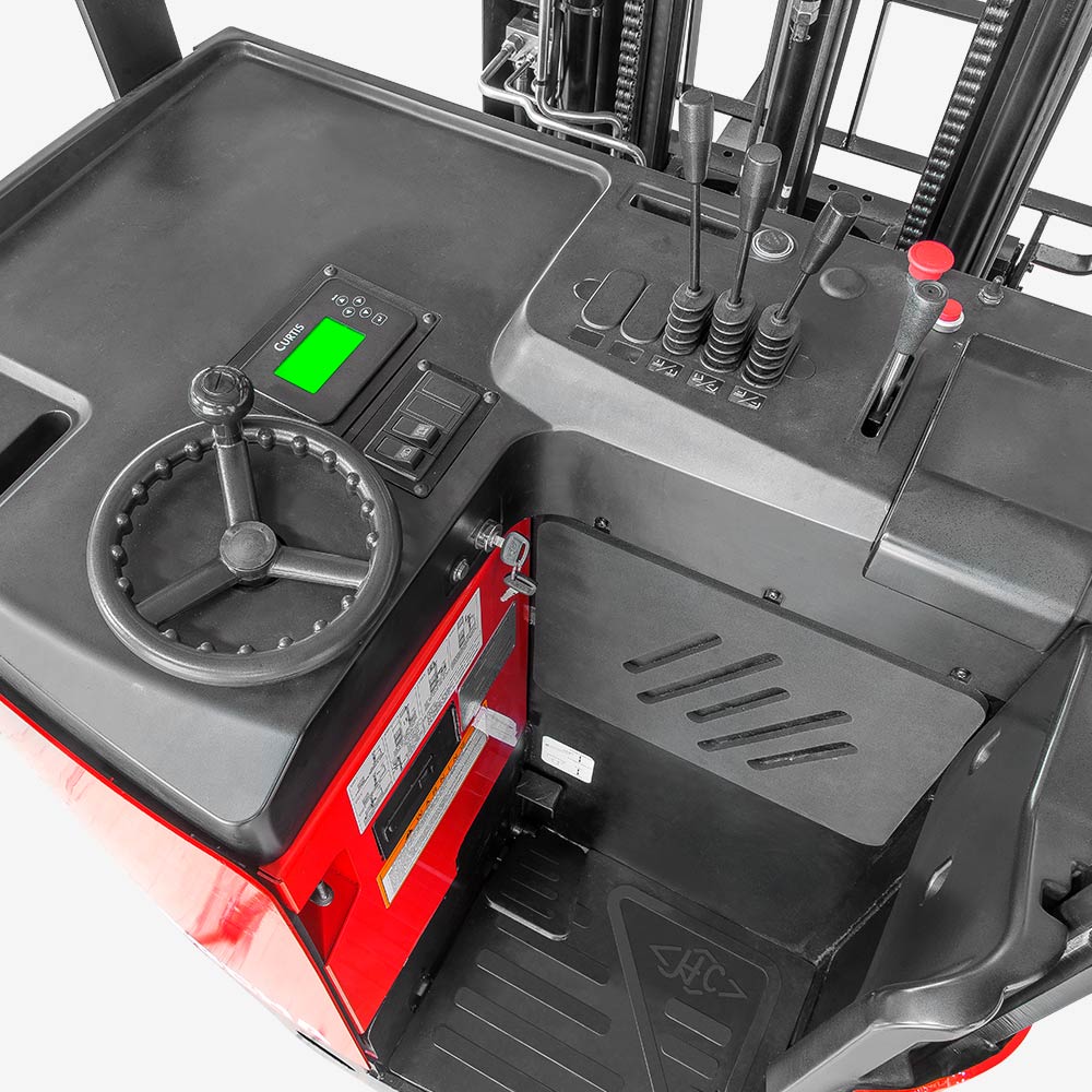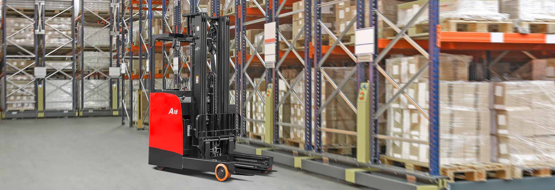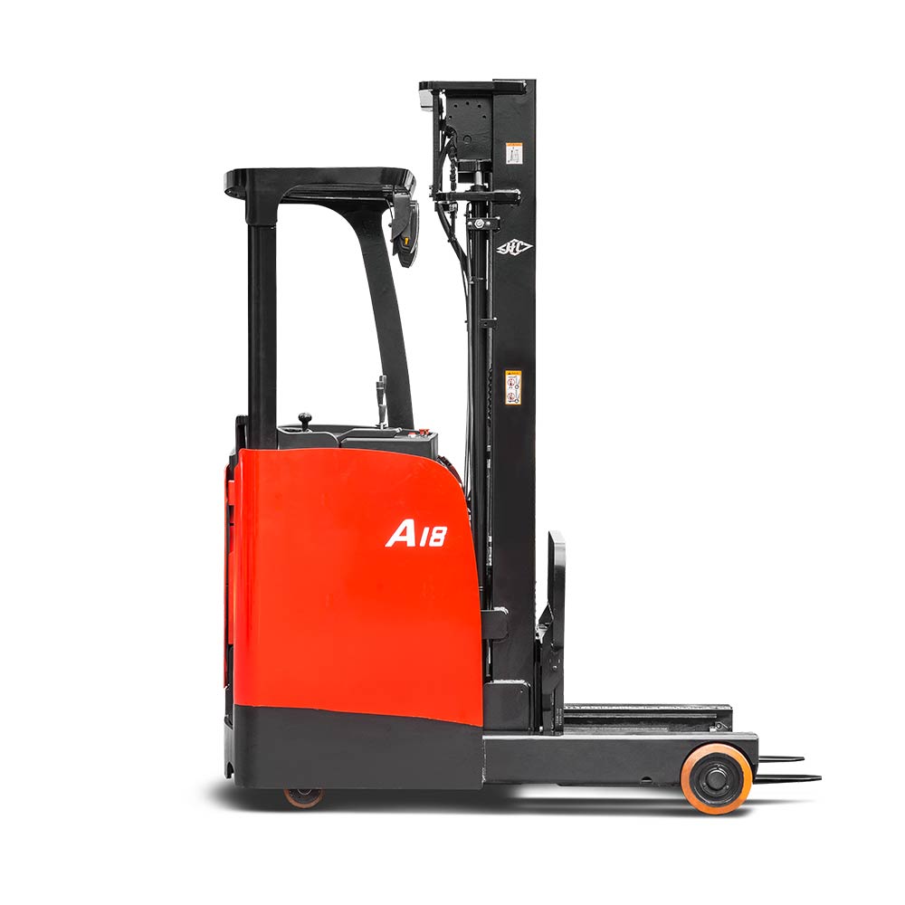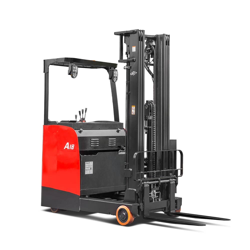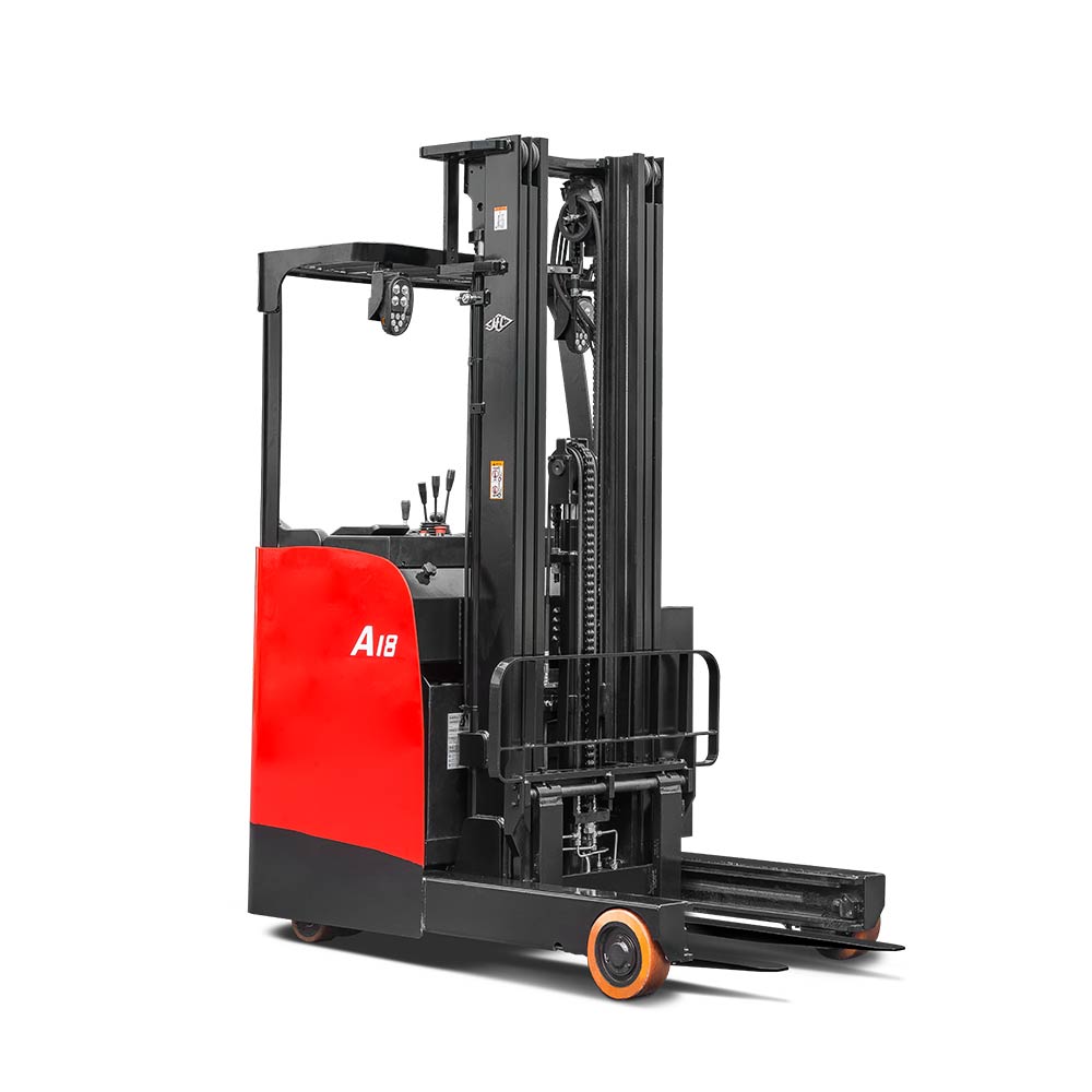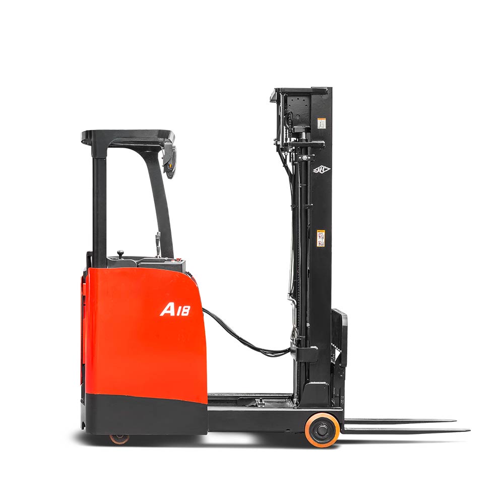 The A series stand-on reach truck is a new-generation product developed by our company in response to different market needs. The truck has comfortable ergonomics, wide operating vision and a stable control system.