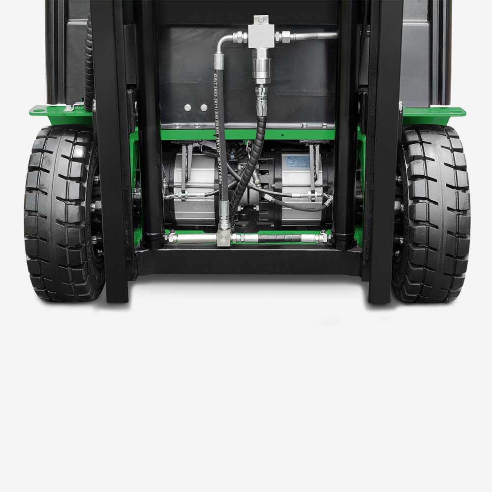 Front dual separated driving motors can realize the wheels forward or backward independently, the small turning radius is suitable for narrow channel; Imported reducer, high power driving motor provides a reliable and strong performance.
