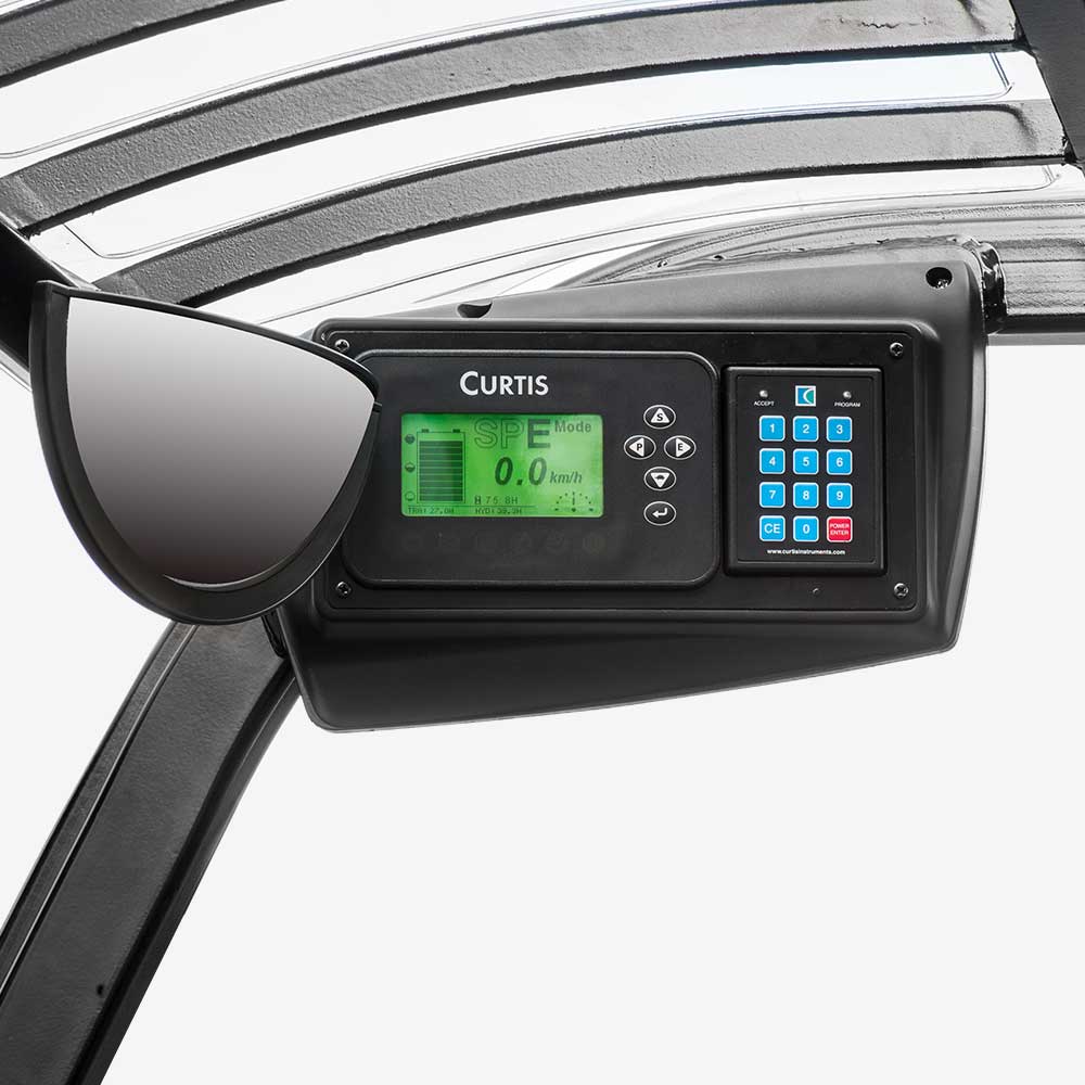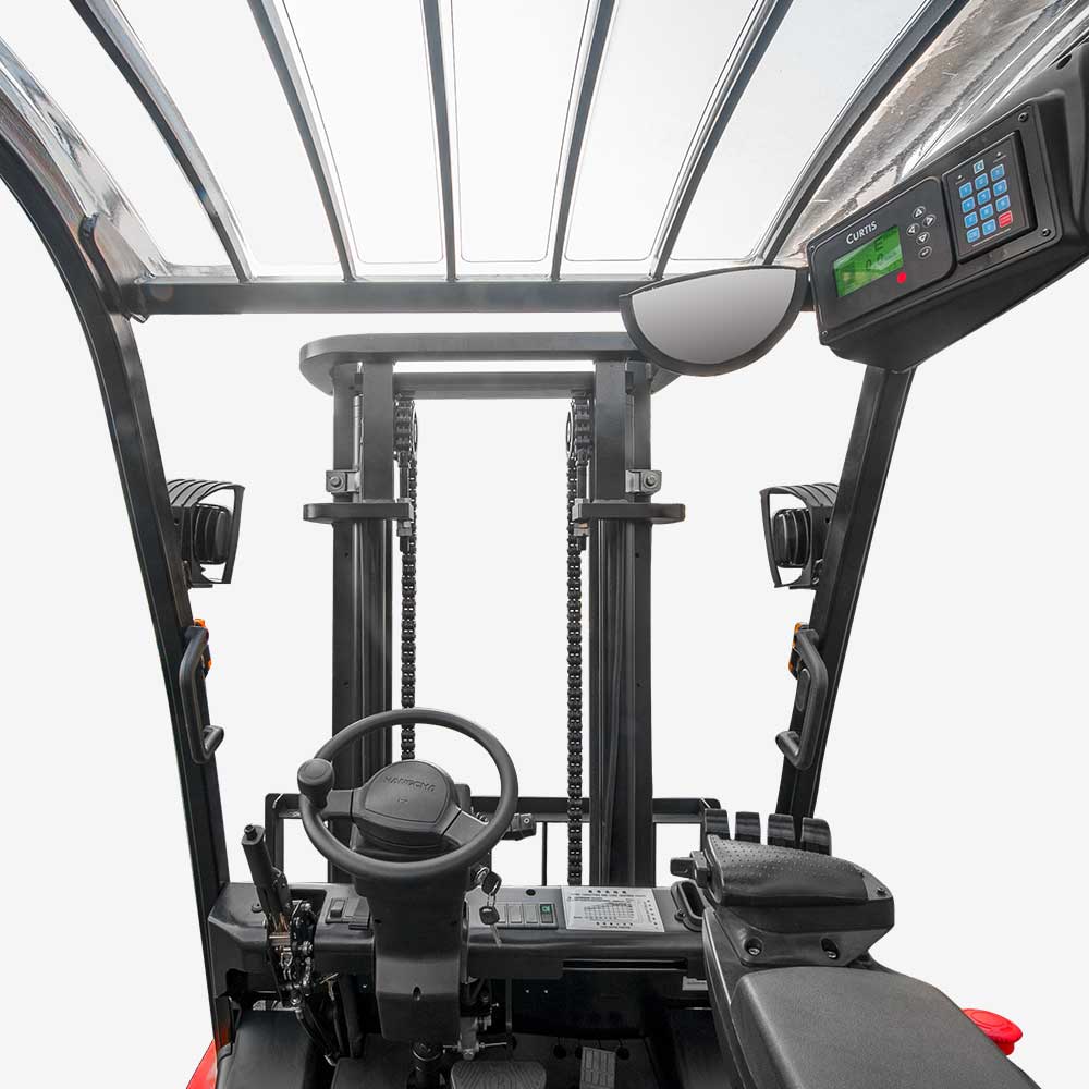 Easy to see dashboard is relocated to overhead, no restriction of the operator's visibility. The forklift is also applied PIN code access for better management.
