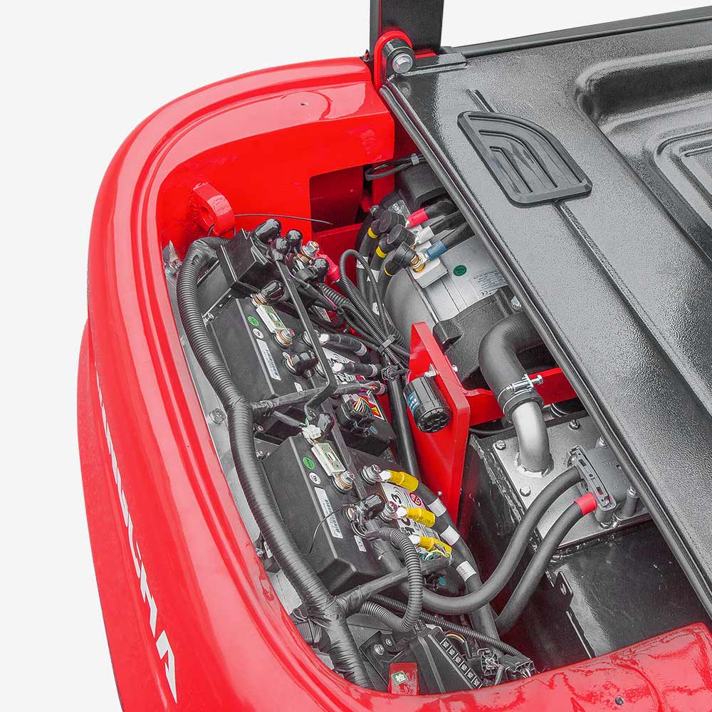The internationally advanced parallel arrangement is adopted for traction motor, and the battery is sunken to chassis, resulting in lower gravity center and better stability of entire truck.