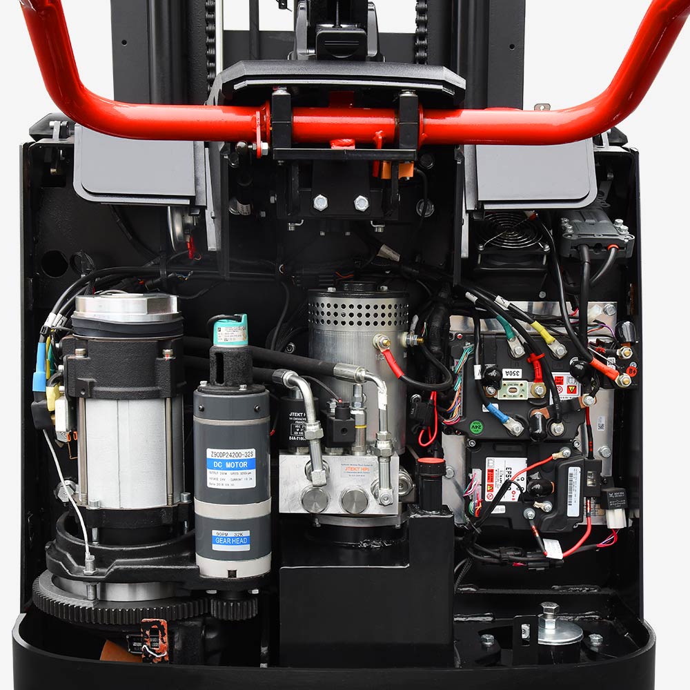Four-pivots and low-gravity-center design and the high-strength steel plate framed structure feature large residual load capacity, and long service life. All plug connectors are imported and waterproof, and all cables have reliable protection, which increases reliability of electrical system significantly.