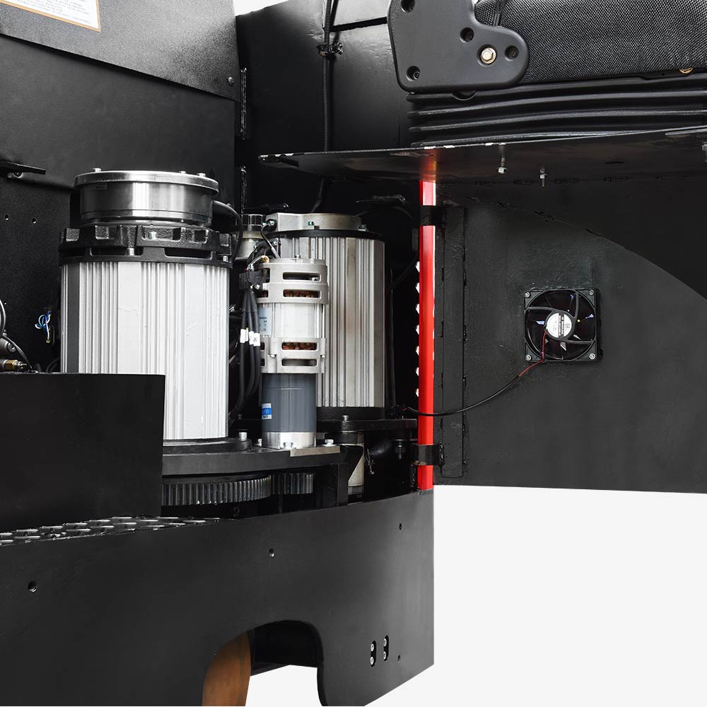 The fully-opened cover provides easy maintenance for motor, controller and transmission, braking, and hydraulic systems.