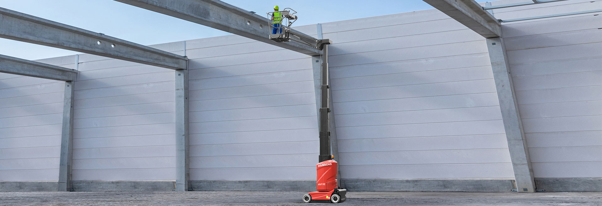 The HANGCHA HV110D is a jib machine that offers outreach capability to get virtually any job done. A 130° rotating jib and 345° non-continuous hydraulic turntable allows for exceptional range of motion and precise positioning. These capabilities combined with the efficient electric drive motors and a low machine weight make the HANGCHA HV110D lift the solution for hard-to-reach jobsite needs. It has the characteristics of compact body size, small turning radius, good handling performance and strong endurance. It is mainly used in warehouse, exhibition hall, aircraft maintenance, mechanical equipment installation, equipment maintenance and other fields.