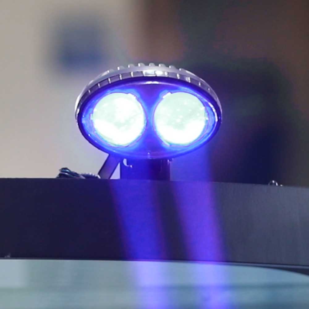 Floor Spot projects a blue dot on the floor around the truck. Especially at blind intersections or at the end of rack aisles, the Floor Spot alerts an approaching truck in time to respond.