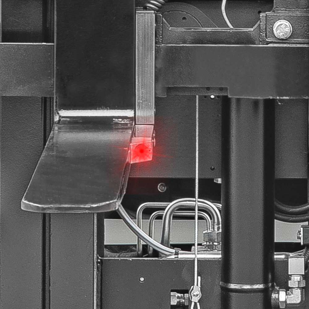 Our positioning lasers significantly simplify the stacking and retrieval process and increase the safety for load and rack. The laser sources are integrated into the fork tips, projecting a red line on the area ahead. This allows the operator to adjust the fork more accurately to be able to drive effortlessly into the pallet.