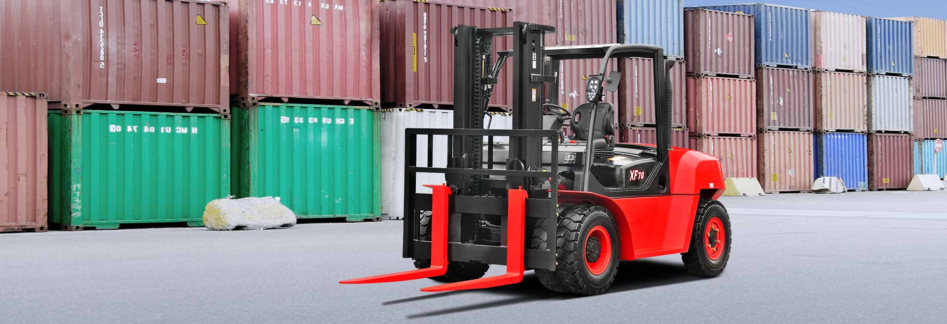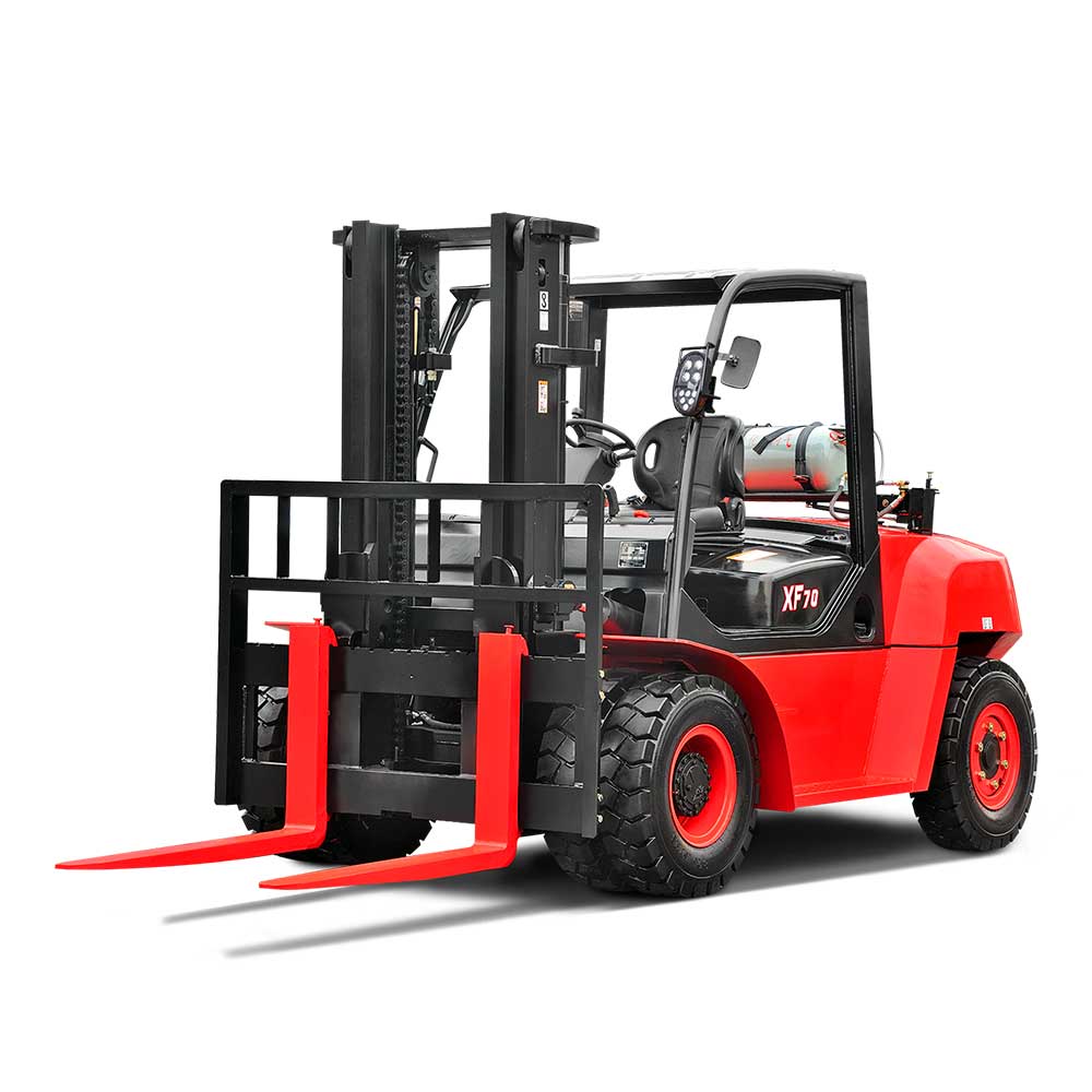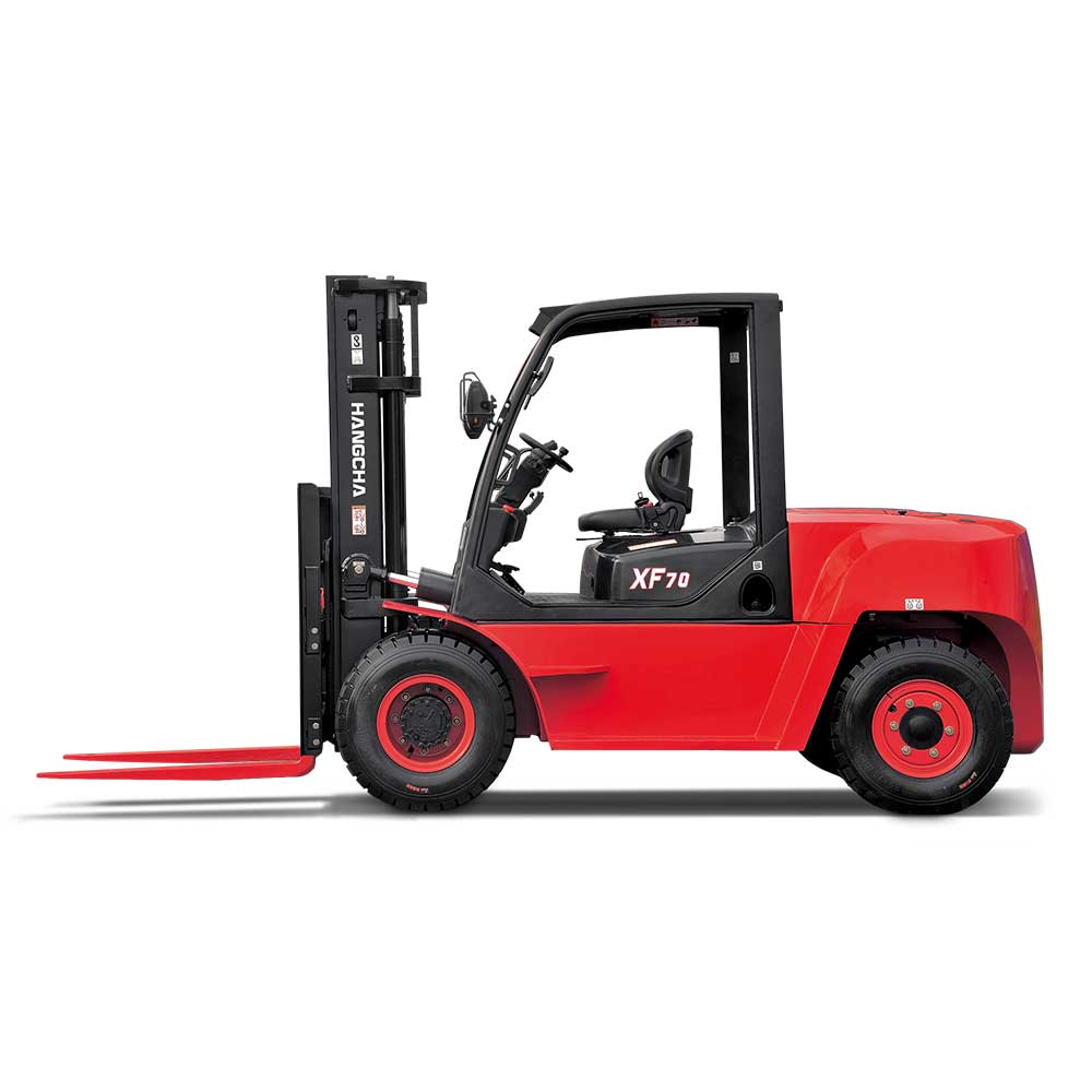 XF series features rugged design, stamped frame and engine hood, stamped instrument panel and head guard, heavy profile rail mast combine to provide excellent rigidity, which ensures outstanding reliability even in heavy-duty work.