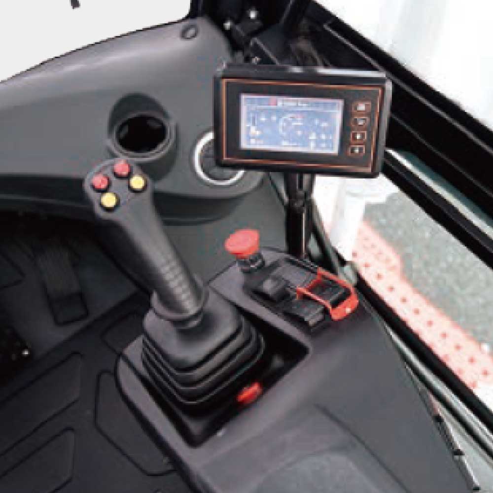 The compact integral joystick enables easy and accurate remote control. The optimized hydraulic braking curve enables smooth easy-to-control braking.