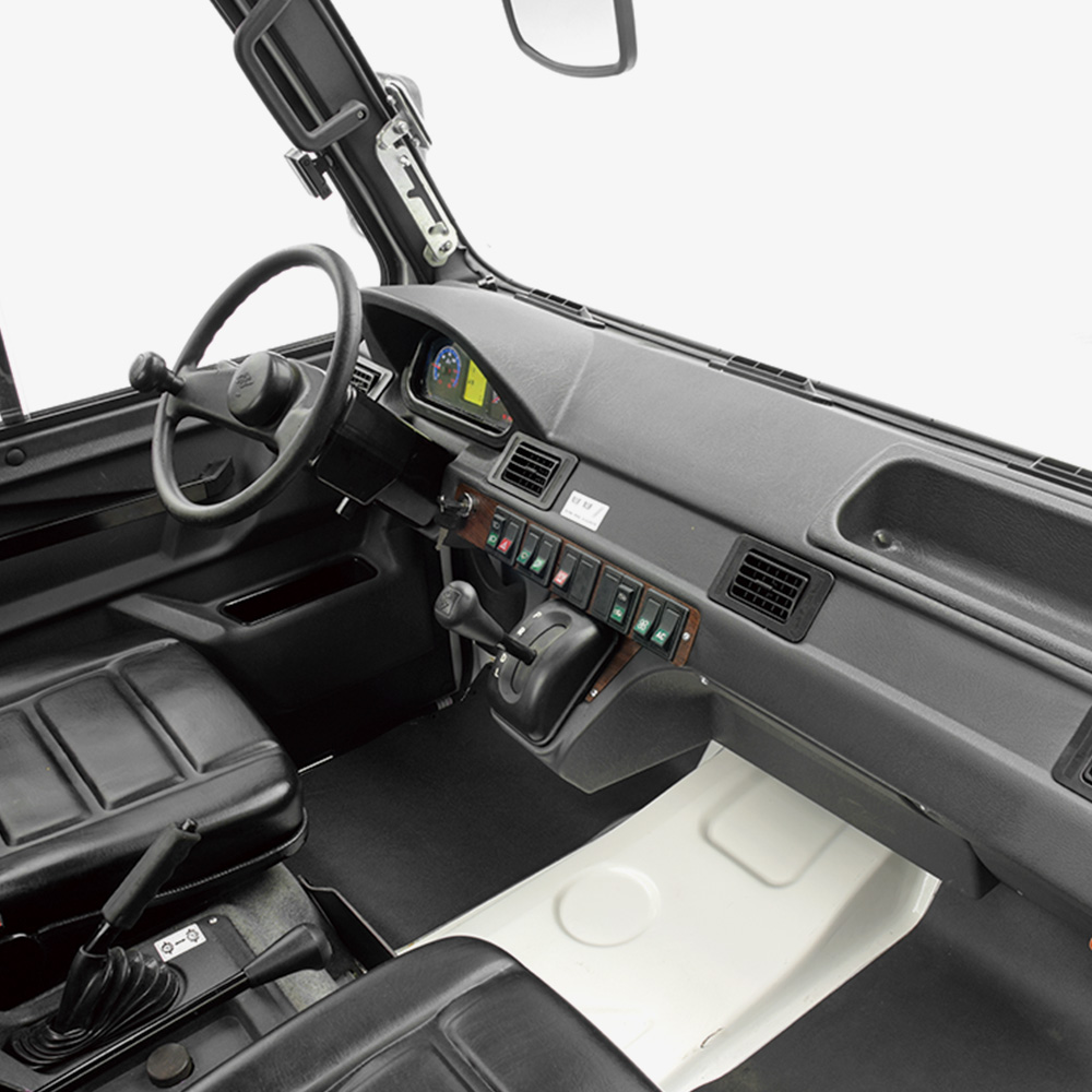 With the human-machine interaction system that consists of compact and reliable novel digital multifunctional instruments with clear liquid crystal displays, a combination rocker switch and a standard speedometer, the operations of the vehicle can be shown clearly.