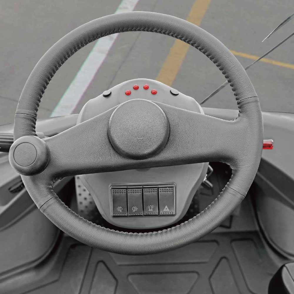 The steering wheel, joystick, control buttons, pedals and seat are all ergonomically designed for easier operation.