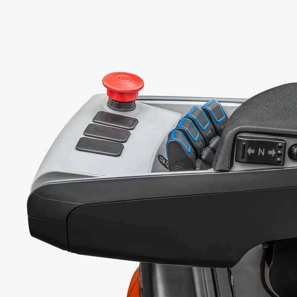 The inclination angle of the ergonomically designed hand wheel is adjustable and the seat can be adjusted 150mm forwards and backwards, so that the operator can choose the best driving position.