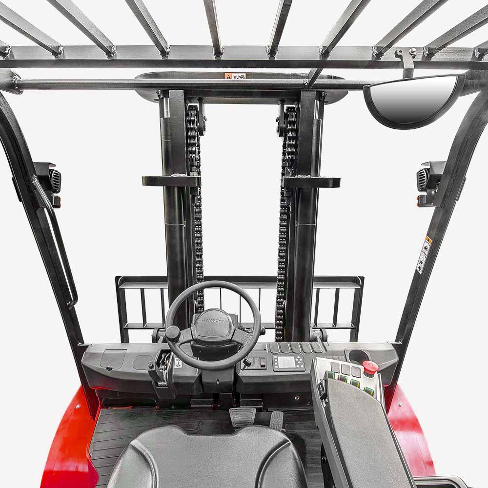 The optimized design of the wide-view mast, wide-view overhead guard and low dashboard enables a broader view of the operator and higher safety.