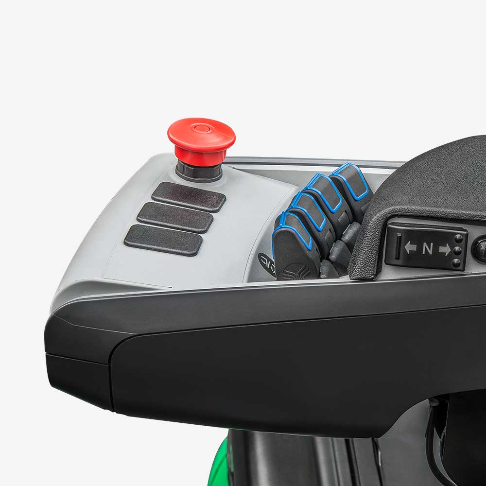 The inclination angle of the ergonomically designed hand wheel is adjustable and the seat can be adjusted 150mm forwards and backwards, so that the operator can choose the best driving position.